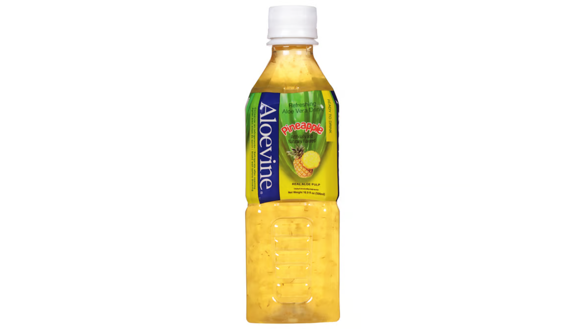 Artificially and naturally flavored. Ready to drink. Real aloe pulp. Changing of color and settling of pulp may occur. www.aloevine.com. Tel: (862) 240-1815. Please recycle. Product of South Korea.